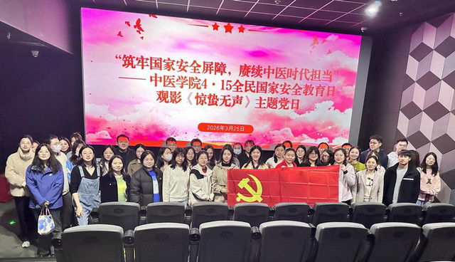 为深入学习贯彻总体国家安全观,强化师生党员保密意识、纪律意识和党性修养,创新党员教育与思政育人形式,3月25日下午,中医学院党委组织师生党支部党员集中观看现代国家安全题材电影《惊蛰无声》。影片聚焦和平年代隐蔽战线斗争,讲述代号“惊蛰”的国家安全工作小组与境外间谍势力斗智斗勇、守护国家核心利益的惊险故事。活动以光影为载体、以英雄为镜鉴,引导广大党员居安思危、警钟长鸣,从隐蔽战线斗争中汲取精神力量,筑牢思想防线、严守纪律底线,切实把国家安全责任融入中医药人才成长全过程。