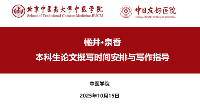 为进一步提升本科毕业生论文质量,帮助同学们明确论文写作规范,掌握论文写作技巧,顺利完成毕业论文,中医学院联合中日友好医院于10月15日举办了“橘井·泉香”系列讲座之本科生论文撰写时间安排与写作指导讲座。讲座邀请到了北京中医药大学本科论文(设计)优秀指导教师、中日友好医院葛瑞东老师,讲座内容为“如何写好一篇本科毕业论文”,中医学院副院长费宇彤教授参加了讲座,中医学院李玲玲老师和中日友好医院张宏杰老师主持。