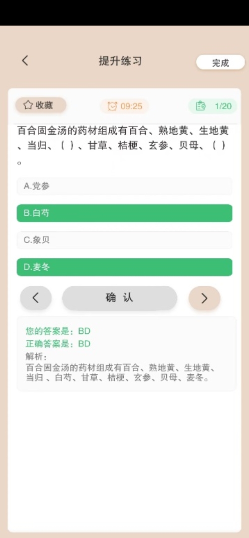 方药离合模块:以方剂学为核心,分为2个子模块,即组成和配伍意义。根据所示方剂名,选择相应的组成中药,并进一步对方中方药呼应,既加深方剂组成、功用等基本知识点的强化记忆,同时联系中药、饮片等周边知识。通过对方剂中药物配伍意义与中药功效进行对比训练,增强学生对方药离合关系的理解。
