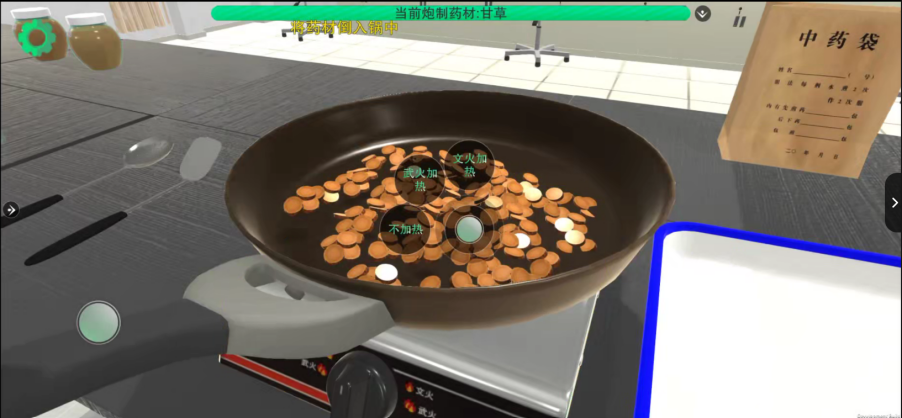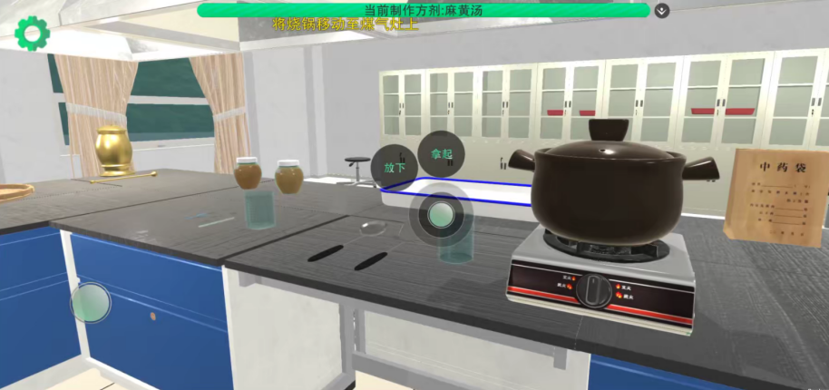 1. 综合实训功能:通过模拟临床辨证立法(链接中诊、中医经典诊疗平台),进行案例虚拟实训,并根据辨证处方,进行虚拟采药,根据药物特点进行虚拟炮制,进而确定制剂形式并进行虚拟制剂(虚拟制剂模块)。本部分虚拟实训中,以方剂为核心及主线,将方剂所涉及药物的原植物、采收加工、常用炮制方法、常用剂型制备等知识,采用问题导向模式,逐层展开并运用到实训内容中。