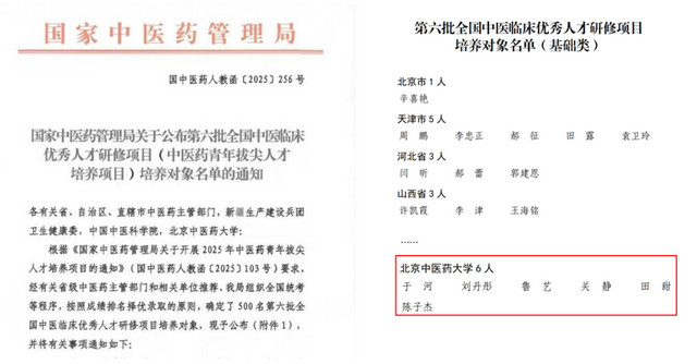 近日,国家中医药管理局公布了第六批全国中医临床优秀人才研修项目培养对象(基础类)名单,中医学院6位教师凭借扎实的理论功底、卓越的临床能力和突出的发展潜力成功入选。