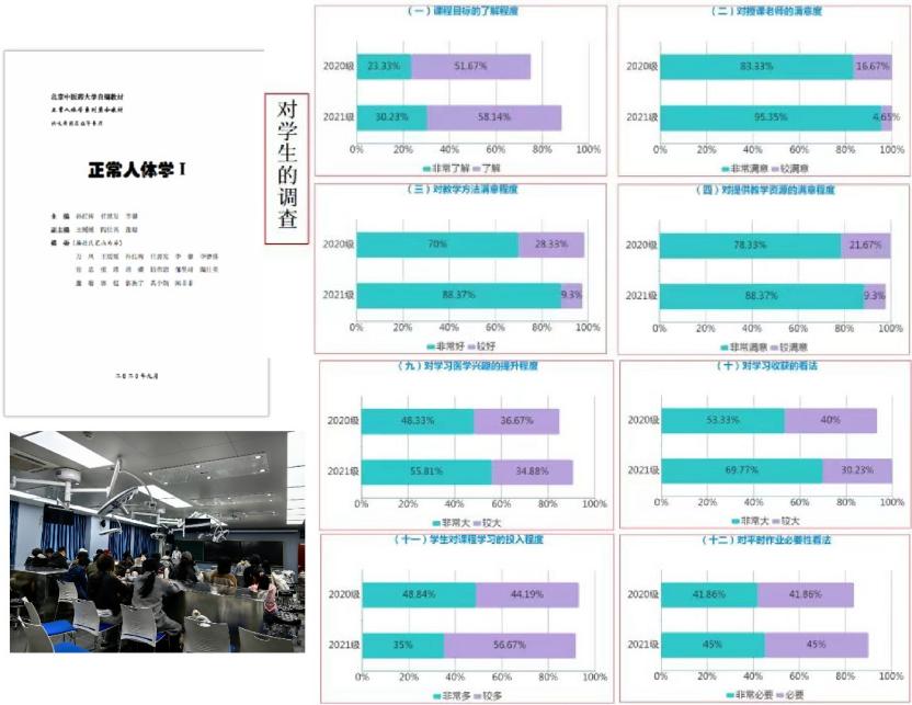 通过匿名调查、访谈、私下聊天等多种方式掌握全体学生的学习情况,课程学习过程中开展阶段性总结和反馈、不断改进教学方法和教学设计,实现“全员、全过程、全方面”地关注学情,通过集中指导和个人指引相结合的方答疑解惑,注意提高学生学习解剖学的兴趣和质量,指导学生个性化发展、鼓励所有学生走上成才之路。